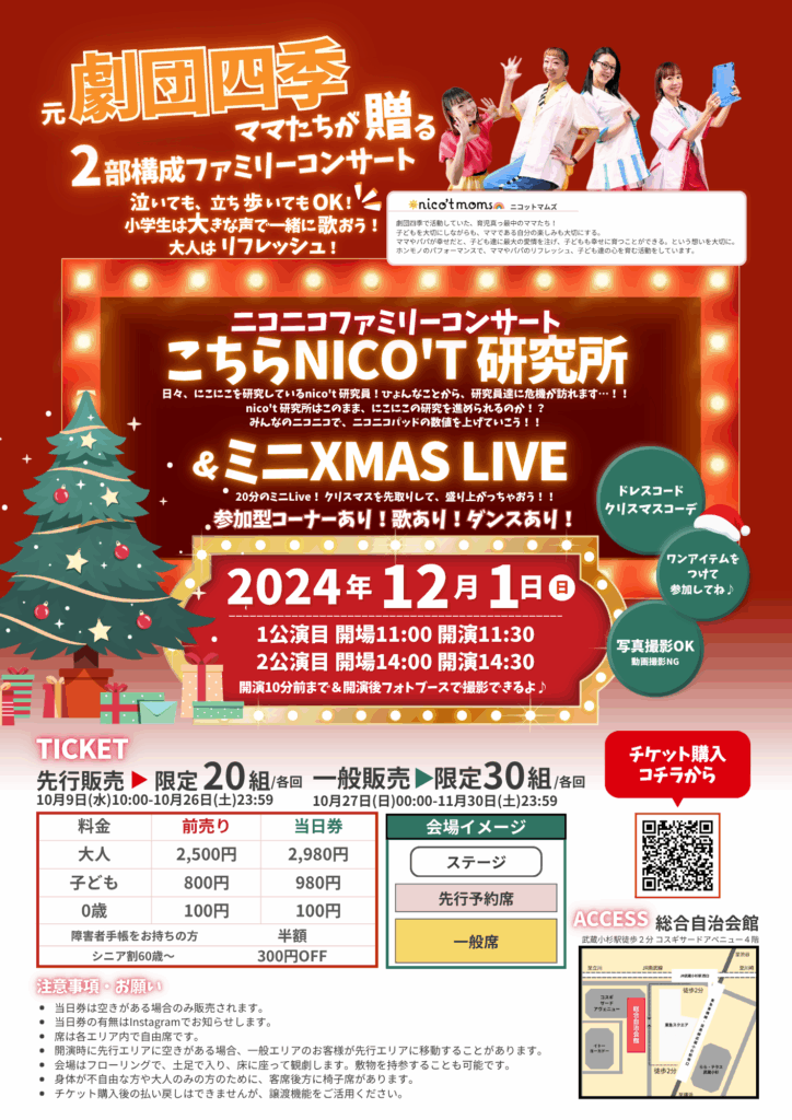 | 2018年 | 劇団四季出身のママたちが中心となり、**nicot moms(ニコットマムズ)**を結成。 「親子で楽しめる本格的なステージを地域に」をコンセプトに活動を開始。 |